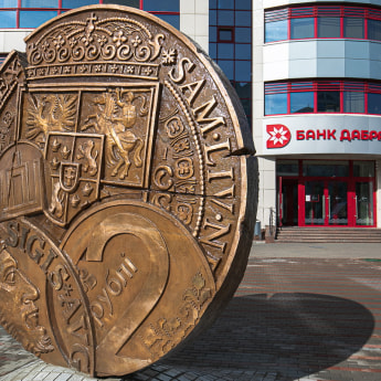 Скульптуру «Монета» можно увидеть рядом с головным офисом Банка Дабрабыт на улице Коммунистической, 49. Ее установка была приурочена к 20-летию со дня основания банка. Автором работы стал известный белорусский скульптор Константин Костюченко.