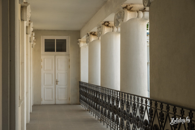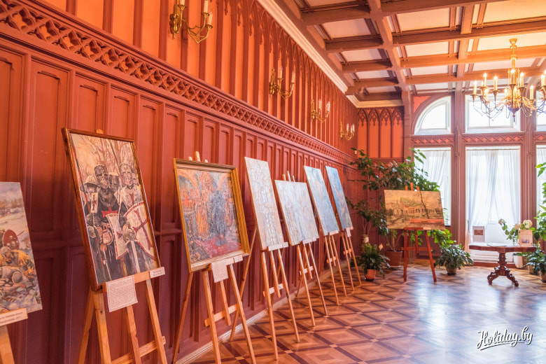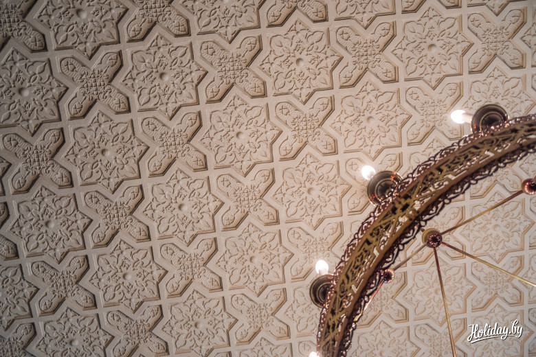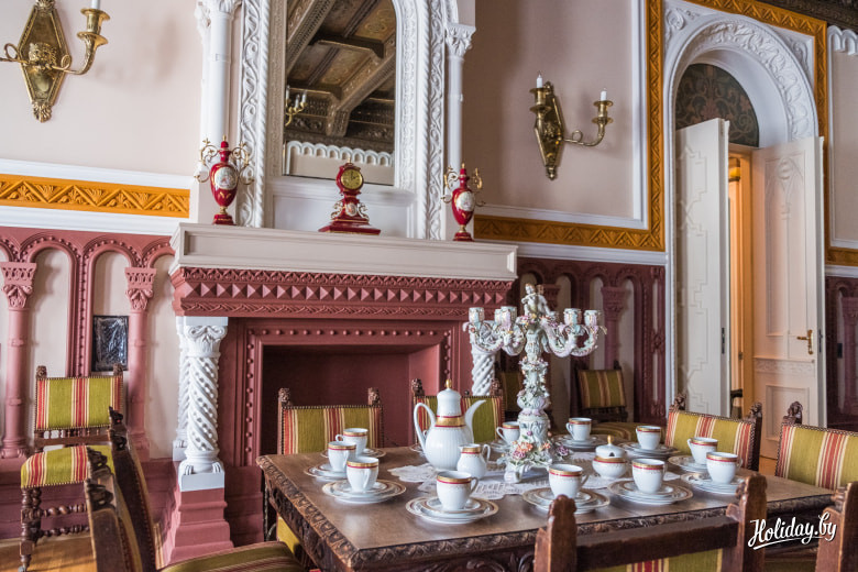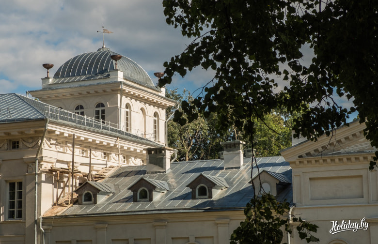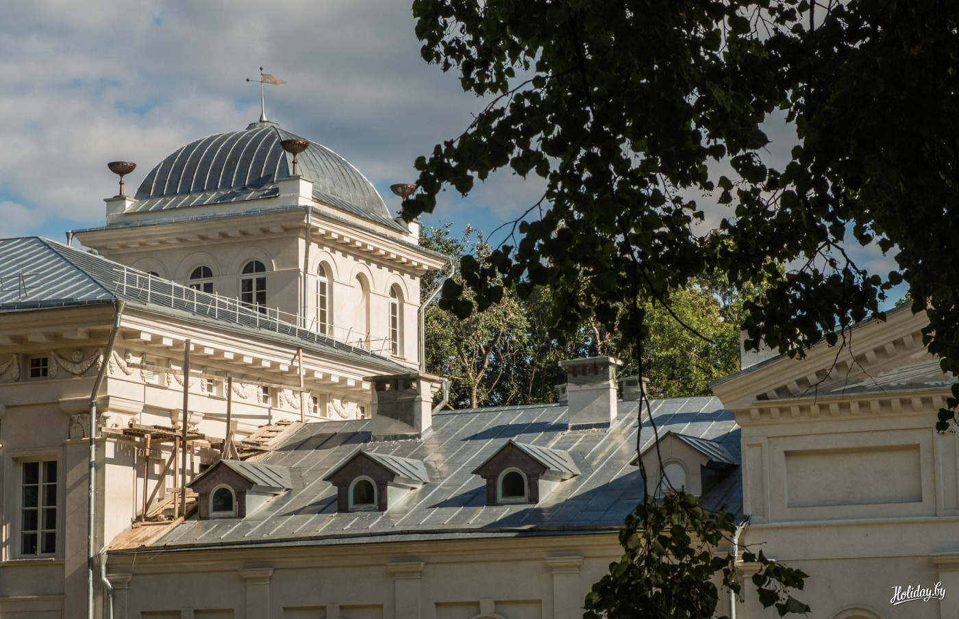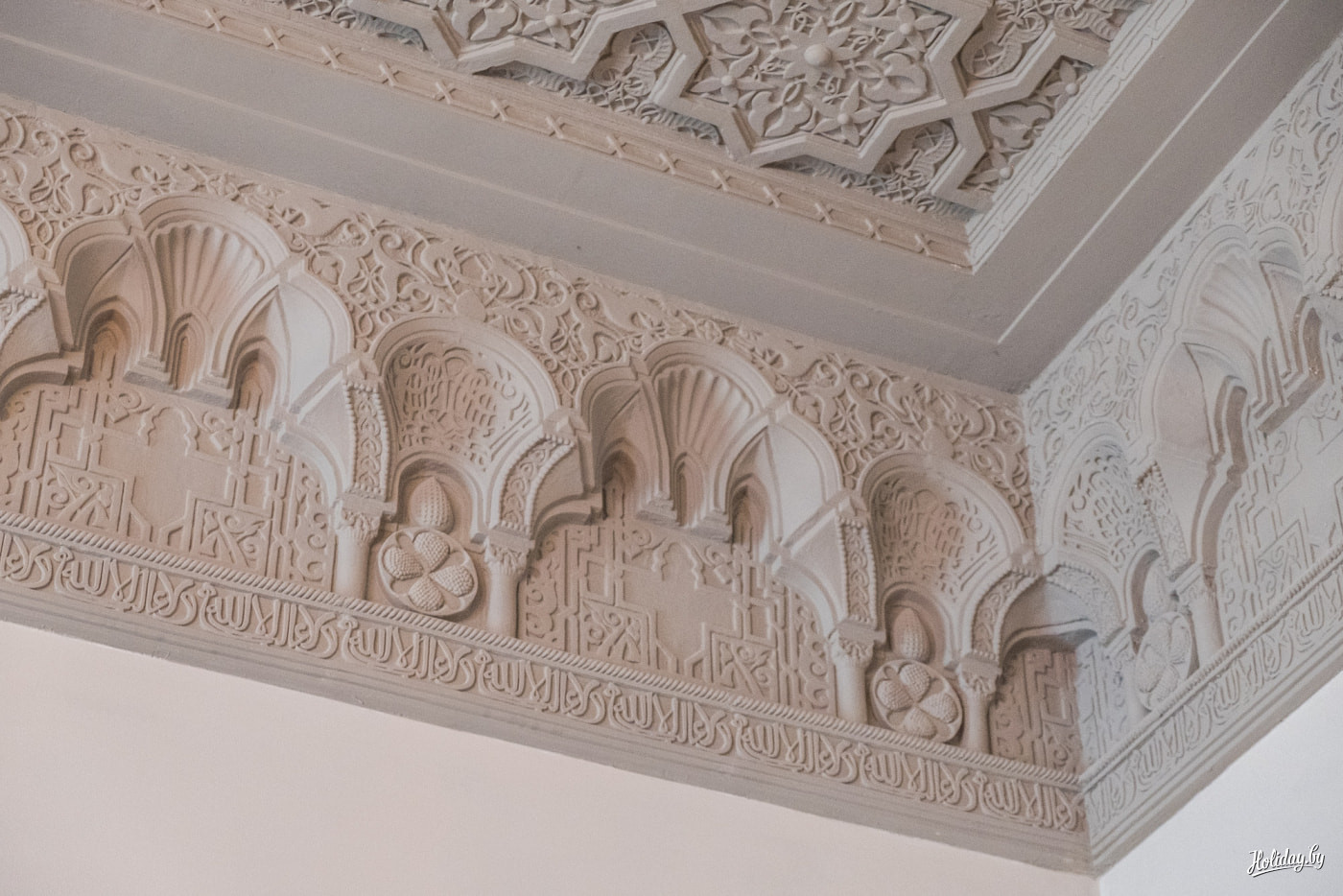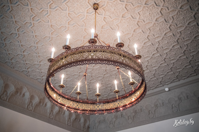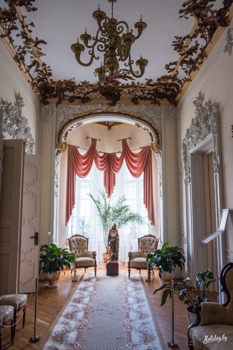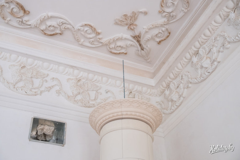 Это единственная в Беларуси усадьба, где уместно вспоминать испанскую Альгамбру. В залах собрана мебель XIX века. Но самое главное – не забывать рассматривать потолки.