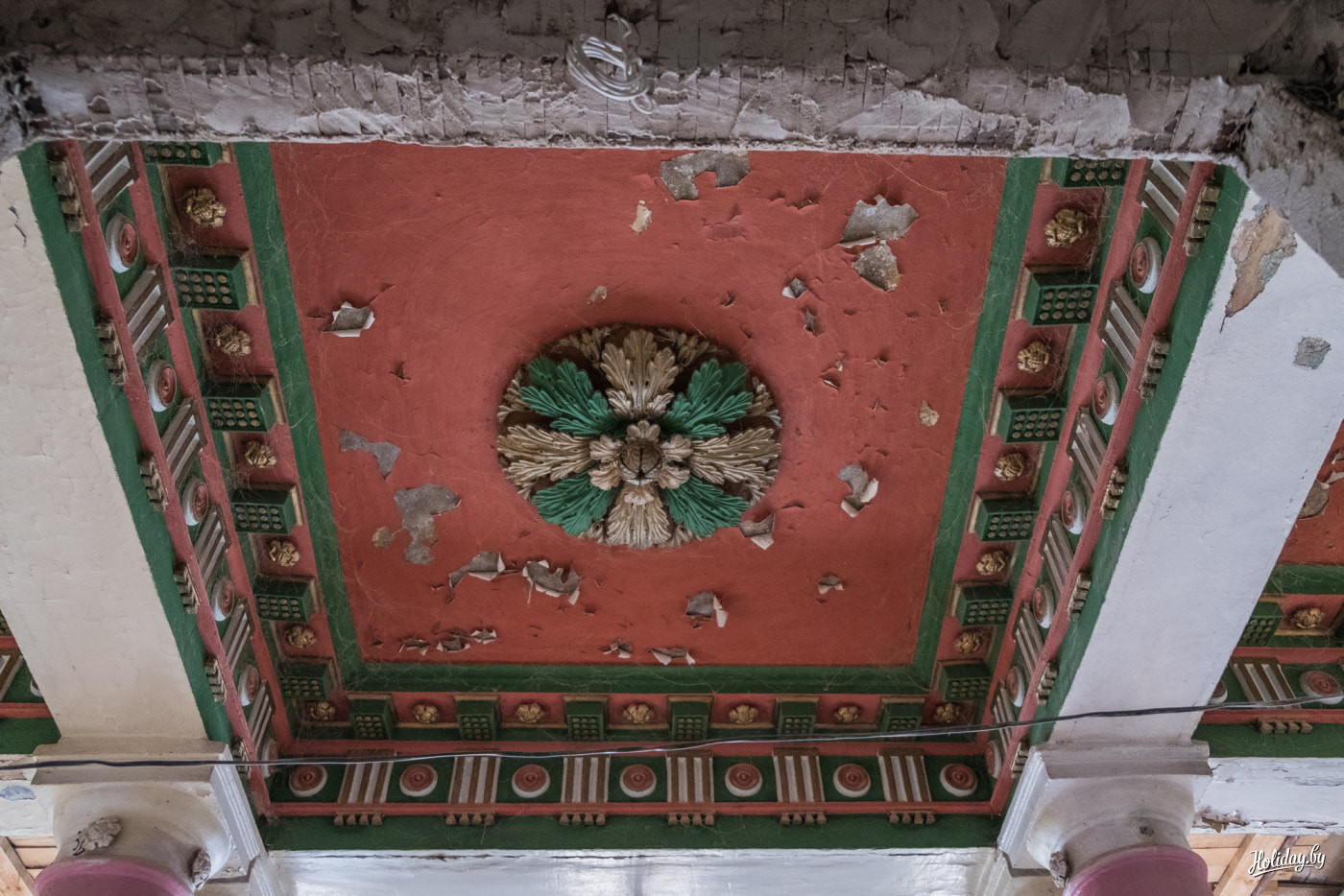 На смену первоначальной роскоши фресок и сусального золота пришла «роскошная» масляная краска, которая и уберегла оригинал. Фантастика! Обещаю, что к концу маршрута вы будете ощущать напряжение в шее – вам придётся полдня ходить по дворцам с умным взглядом в потолок. Хотя бы ради того, чтобы найти в Жиличах единственную (!!!) дошедшую до наших дней оригинальную – не закрашенную – позолоченную деталь.