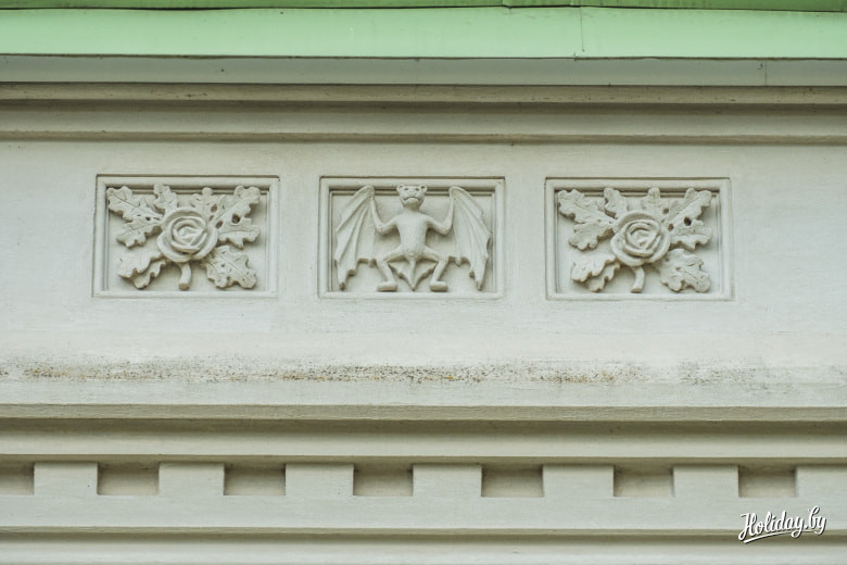 Если Гатовский построил усадьбу в форме буквы «Г», чтобы навсегда попасть в историю этого места, то Викентий Альфонсович изобразил в камне семейный герб Козелл-Поклевских и разместил его над балконом главного входа в усадьбу.