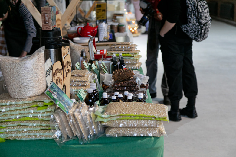 Крышу над головой получил фермерский рынок «Усё сваё», уже известный своими ярмарками на свежем воздухе. Внутри представлено около 20 прилавков с домашней продукцией, где царит похвальное разнообразие: каждый фермер и кулинар работает в своей нише и не повторяет ассортимент соседнего торговца.
