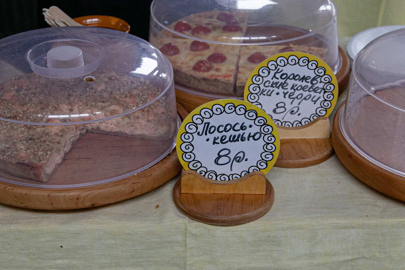 Часть прилавков отдана под сладости. Шоколад ручной работы стоит от 16 рублей за кило – даже дешевле фабричного. Рядом продают медовый мусс с облепихой – по 10 рублей за банку в 250 мл, а также крем-мед по 8 рублей за 100 мл. Из мучного – крафтовый хлеб по цене от 11 рублей за кило. Шарлотки идут по 6 рублей, а ржаные горбушки – по 4.