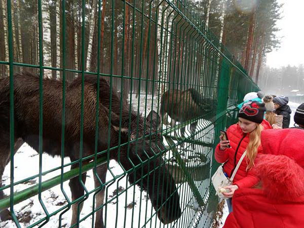 В просторном Лесном зоопарке на территории заповедника мы познакомимся с большой пятёркой - лосем, зубром, медведем, волком и рысью. А также увидим оленя и лань, дикого кабана и косулю, лису и енотовидную собаку.