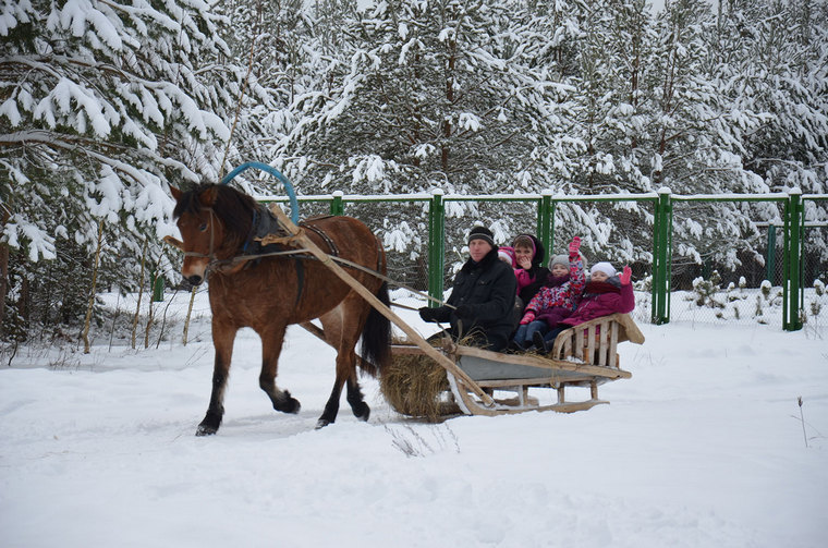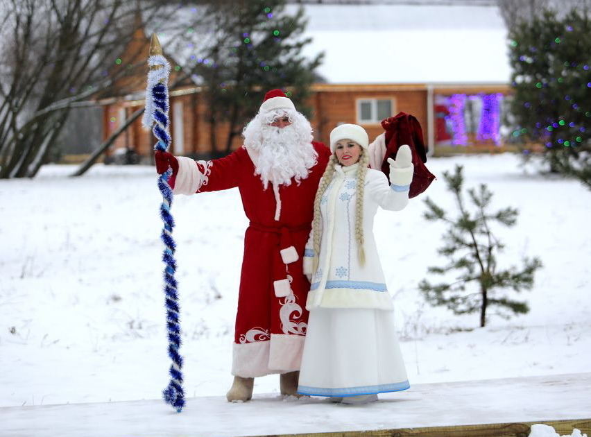 У Дедушки Мороза, как у истинного полешука, есть свое подсобное хозяйство - настоящий ручной олень Кузя, оленушка Машка, козлята и барашки. Их можно погладить. На подворье Деда Мороза Вас встретят Дедушка Мороз, красавица Снегурочка и любимые герои.
