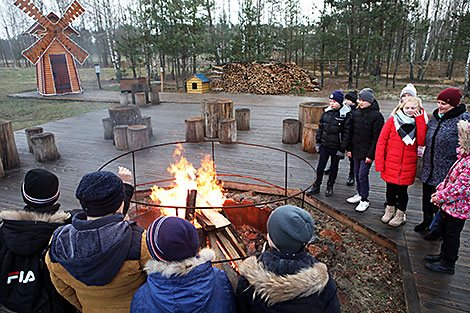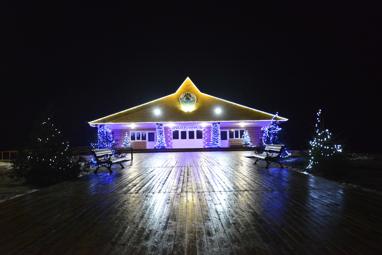 А на площадке с необыкновенно красивой новогодней ёлкой каждый желающий сможет поводить хоровод, увидеть ветряную мельницу и скульптурные композиции из дерева. Каждый желающий сможет самостоятельно пожарить сало на костре и запечь картофель в углях. Так же Вас ожидает фотосессия со сказочными персонажами и Дедом Морозом.