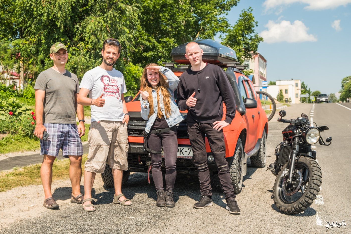 Дорога до Браслава мне запомнилась ещё и приятным знакомством. До городка нашу машину обогнали два мотоциклиста. С ними мы встретились уже в Видзах. Я тут же узнал крутой кастомный байк замечательной девушки Наили Мазитовой. Буквально накануне я читал большую статью про её «мотокрафт». И вот мы уже фотографируемся все вместе и желаем друг другу хорошего отдыха на Браславских озёрах. Хотите мото-красоты в вашей ленте соцсетей? Подпишитесь на инстаграм Наили.