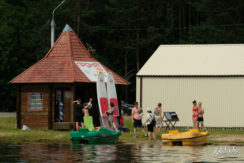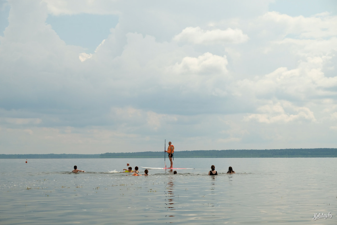 Днём на браславском пляже летом становится людно. Красок пляжному отдыху добавляет прокат катамаранов и сапбордов от клуба «Дривятич».