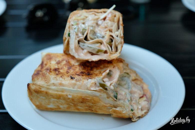 Просто мы попали на вечерний пляж на два часа позже запланированного. К еде тоже были вопросы: драник подгорел, а в шаурме чувствовалось не первой свежести масло для обжарки и соус был излишне «майонезистый». Драник «По-браславски» с начинкой сверху был очень хорошим, надо отметить.