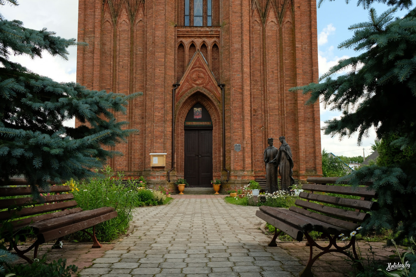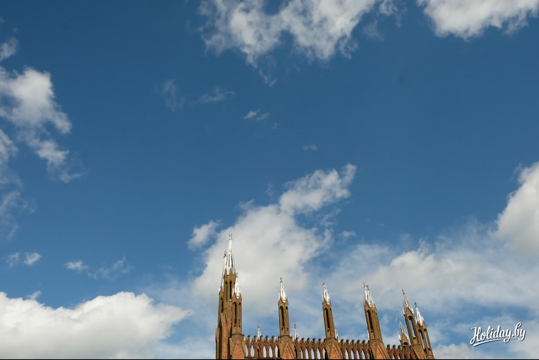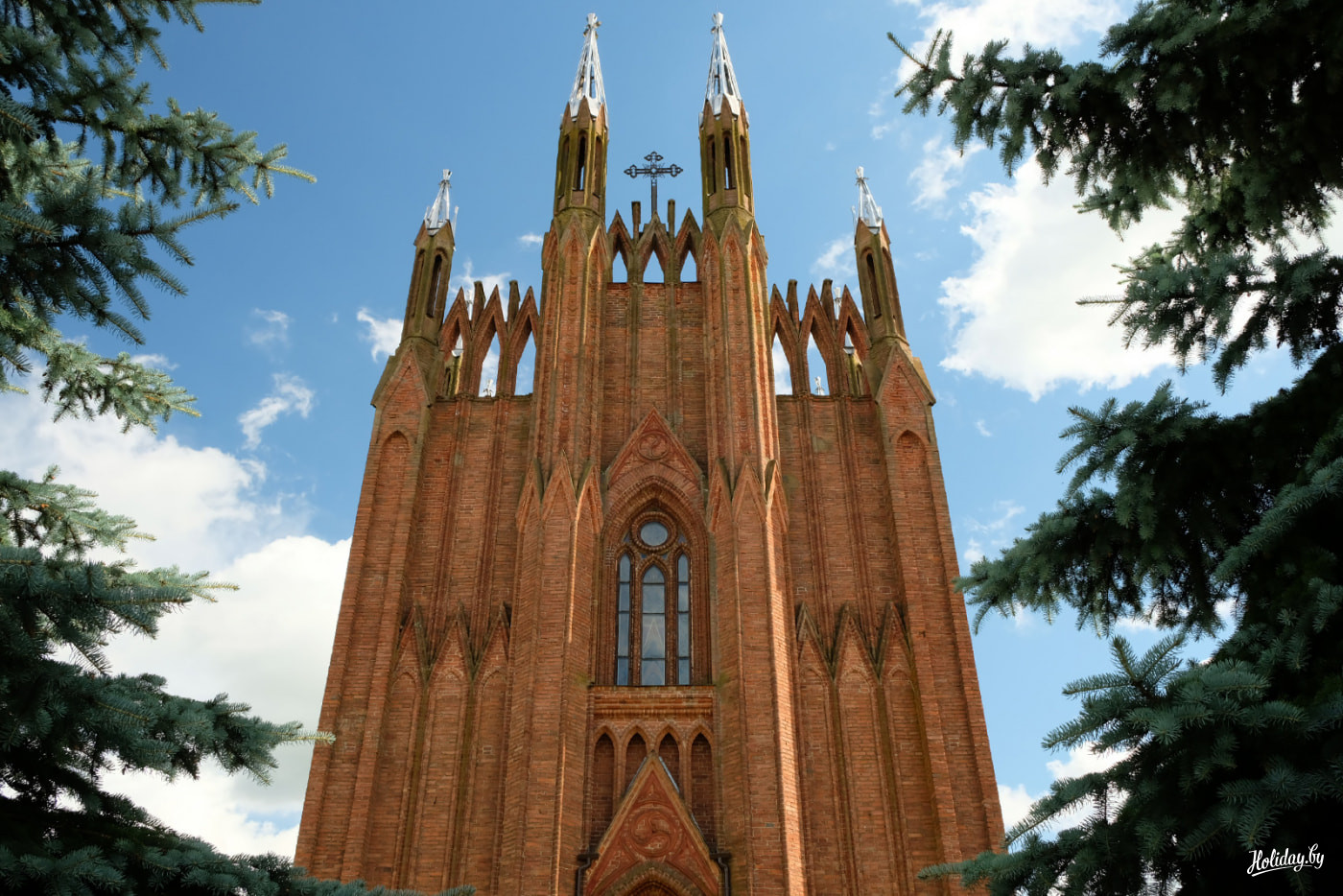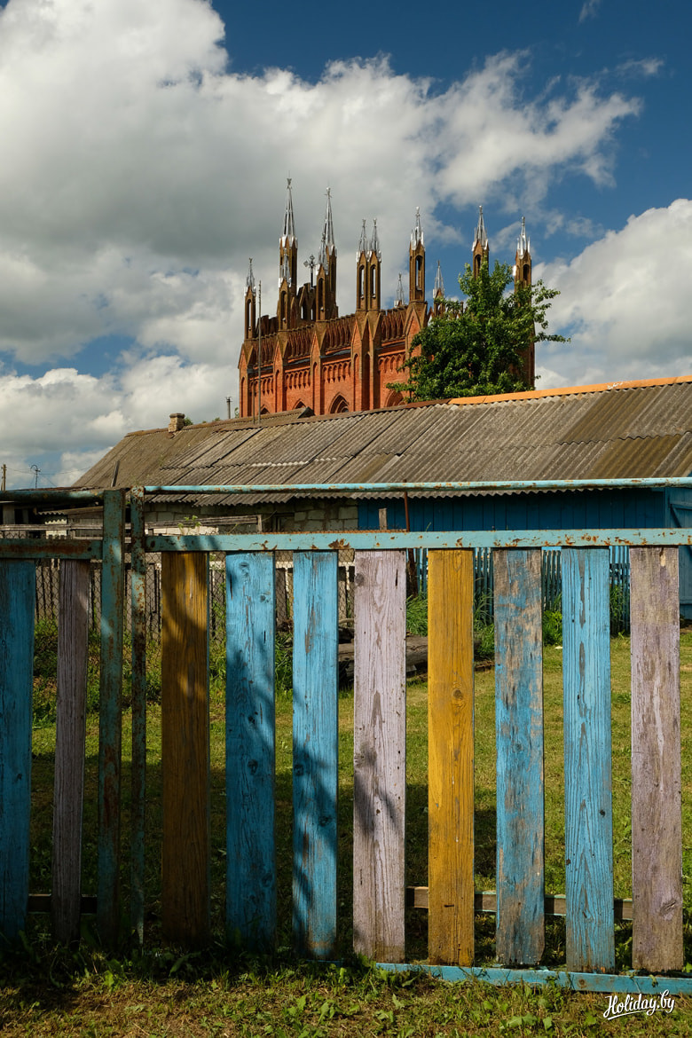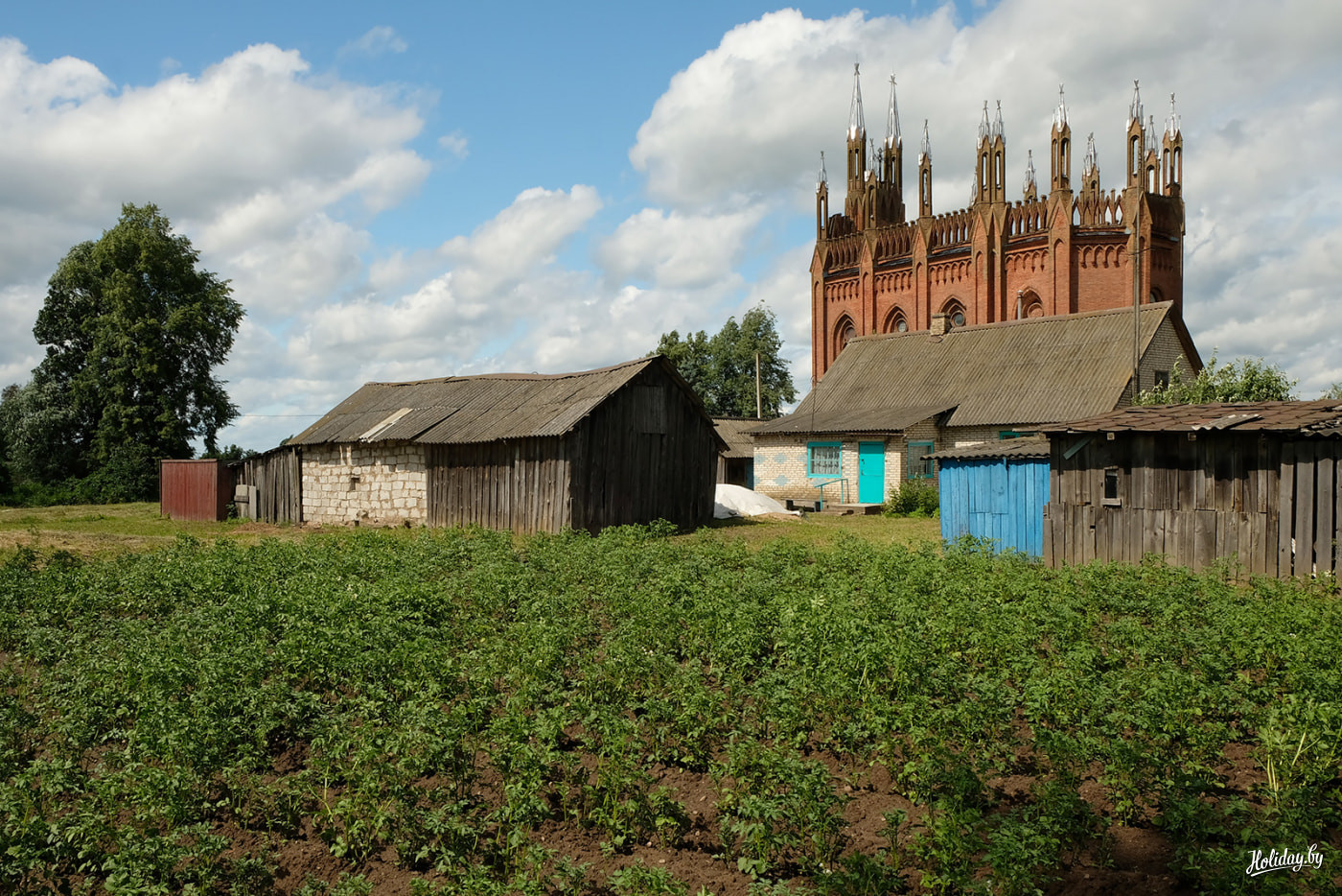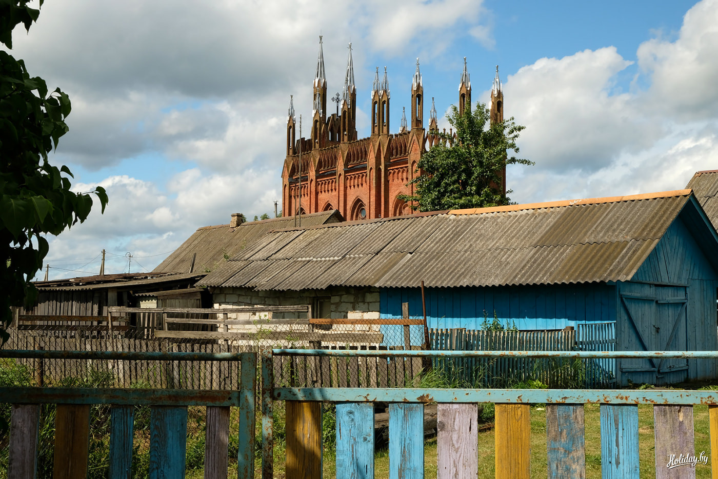 Поэтому ничего не оставалось, как просто полюбоваться необычным памятником «пламенеющей готики» на фоне невзрачного агрогородка. Готический пожар.
