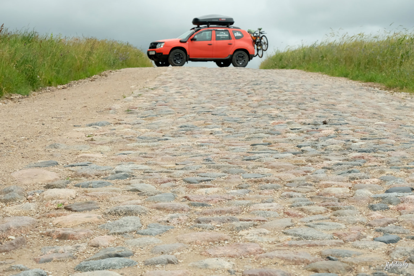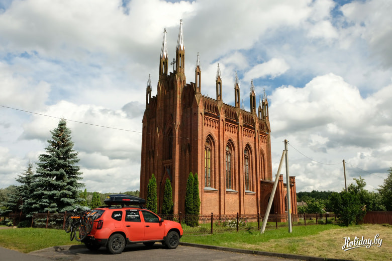 Но об этом чуть ниже – пока что я выруливал в нужные Петкуны и сделал остановку в живописной деревеньке Иказнь, где есть большой неоготический костёл и настоящая «брукаванка» - вымощенная булыжником дорога, которая сегодня идёт просто посреди поля.