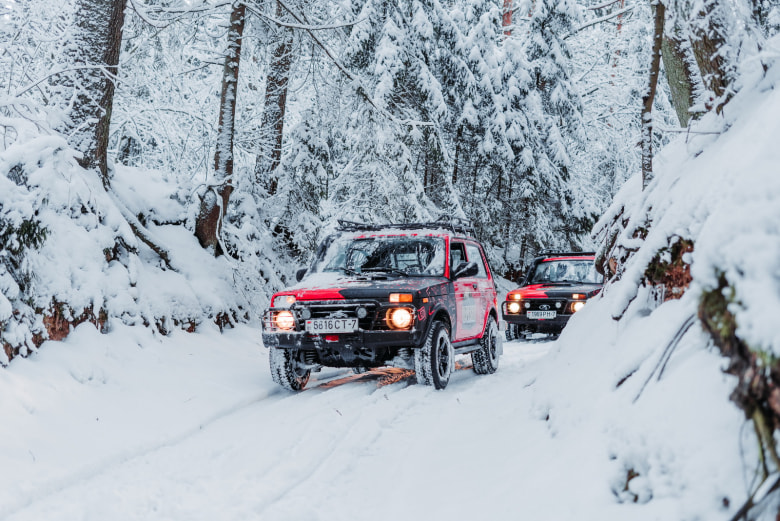 Машины и маршруты: Выбор пал на «Ладу 4х4». Она отлично справляется с бездорожьем, проста в обслуживании и мысленно возвращает нас в гаражи наших дедушек, ведь практически ничего не изменилось в этих машинах с тех пор!