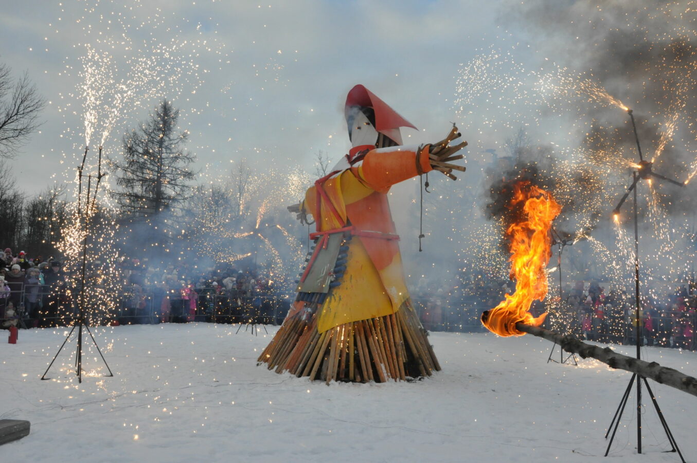 Самыми популярными забавами, которые раньше устраивали в селах, были: кулачные бои, поедание на время блинов, катания на санях или бричках, лазанье на столб за призом, сжигание чучела, и многое другое.