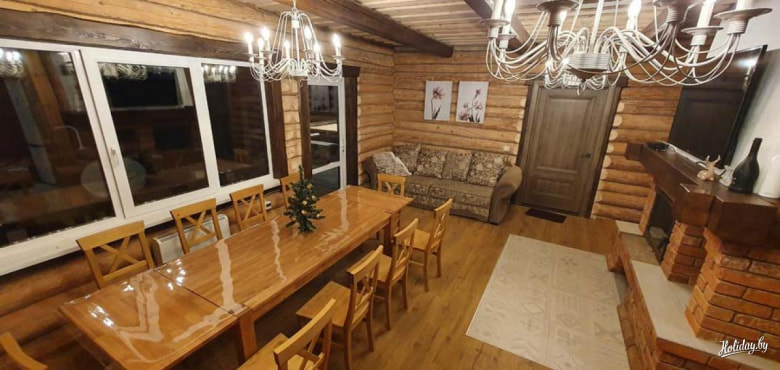 Основной дом в усадьбы под Минском рассчитан максимум на 17 человек. В спальнях смогут разместиться от 8 до 12 человек, также в распоряжении отдыхающих два дивана в гостиной. В доме находится кухня-столовая площадью 60м2, которая позволяет организовать любое корпоративное мероприятие. Второй дом, оборудованный всеми необходимыми удобствами, рассчитан на небольшую компанию из 4 человек.