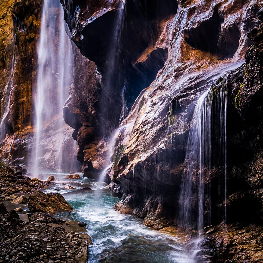 Теснина такая узкая, что кажется, вы можете протянуть руку и дотронуться до серебряных струй.