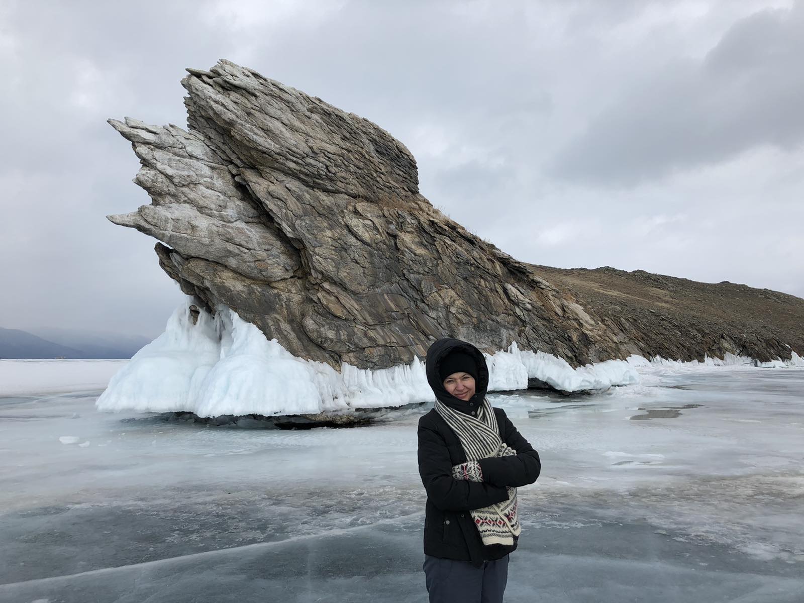Самая северная точка острова. Название переводится с бурятского как «клык». С суши он действительно похож на клык, а вот с воды (в нашем случае со льда) можно увидеть очертания женского профиля. Скала окутана множеством легенд, а виды просто ошеломляют!