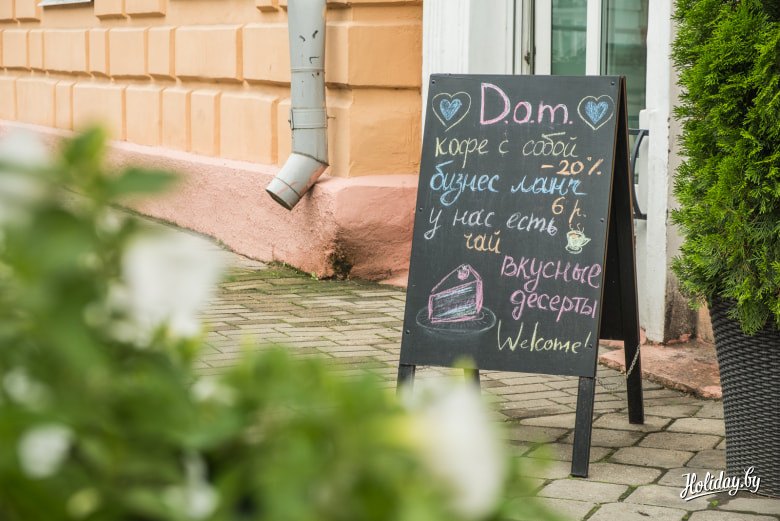 Кофейня D.O.M в Гомеле (пр. Ленина, 34) отлично подойдёт для завтрака. Если погода позволяет – смело располагайтесь на террасе перед входом.