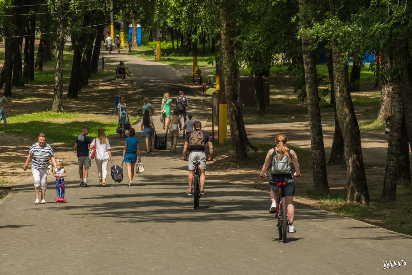 Нам повезло, что в момент нашего визита в Гомель стояла невыносимая жара. В выходные дни сами местные жители своими людскими потоками показали, где предпочитают проводить дни напролёт местные жители.