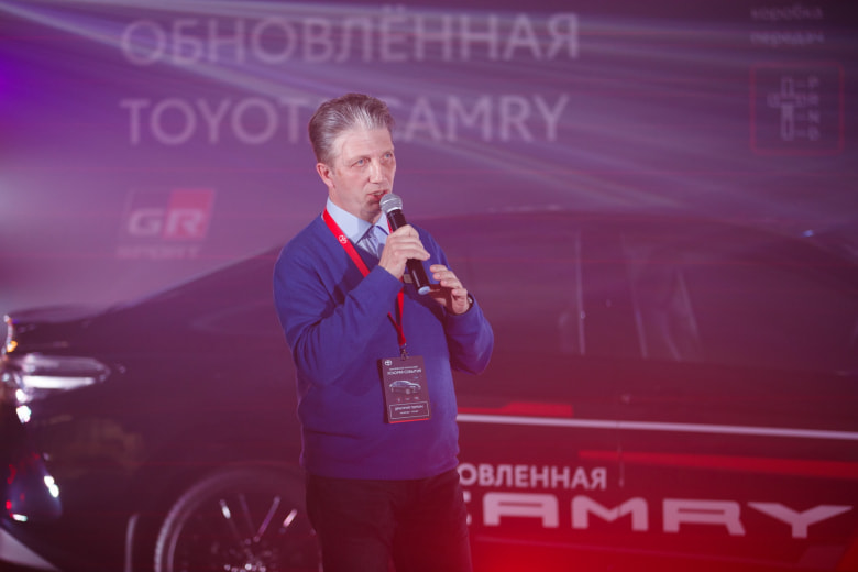 По сложившейся традиции вечер открыл руководитель официального дилера Тойота и Лексус Сергей Гаврилко. Он поприветствовал клиентов и гостей мероприятия, рассказал о перспективах бренда Тойота и планах холдинга «Атлант-М» по продажам модели Camry в ближайшем будущем.