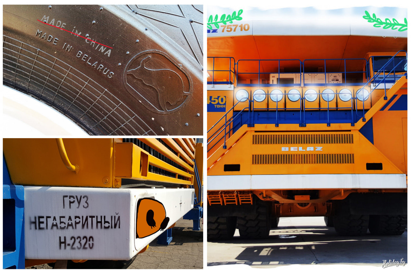Несколько лет назад мы делали вместе с художницей Аней Редько замечательный проект о поездках по Беларуси. Он назывался «Зімовыя нататкі», когда мы не только смотрели на интересные места, но и дорисовывали смешное на сделанных фото. Из того проекта мне очень запомнились две поездки, про которые расскажу. Эта – про БелАЗ. На завод в Жодино нужно съездить, чтобы понять, каким крутым инженерным гением может обладать человек. Завод проводит экскурсии и дни открытых дверей, чтобы туристы могли поглазеть на самые большие в мире карьерные самосвалы. На некоторых из них можно прокатиться тут же в тестовом карьере.