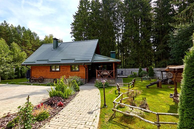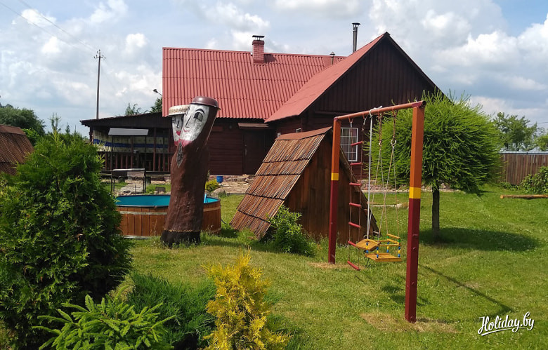 В 20 мин езды от Минска в сосновом лесу расположилась усадьба "Домики в лесу". Это настоящее воплощение истинного загородного отдыха. На территории находится 2 дома. Гостевой дом рассчитан на 2-3 человека. Это идеальное решение для двоих. Разместиться семьёй или компаний до 6 человек можно в большом доме с баней. Вся территория засажена мягким газоном, можно босиком гулять, играть в бадминтон, прыгать на батуте, безусловно, пожарить шашлычок на мангале, понежиться на солнце на террасе, охладиться в бассейне. Интерьер в домиках выполнен в деревянном национальном стиле, что очень воодушевляет. Когда вы достаточно отдохнули в усадьбе, можно потом отправиться на прогулку в лес, недалеко от дома находится озеро, где можно порыбачить и поплавать. Для маленьких гостей есть детская площадка, а для взрослых за доп. плату - баня и кальян.