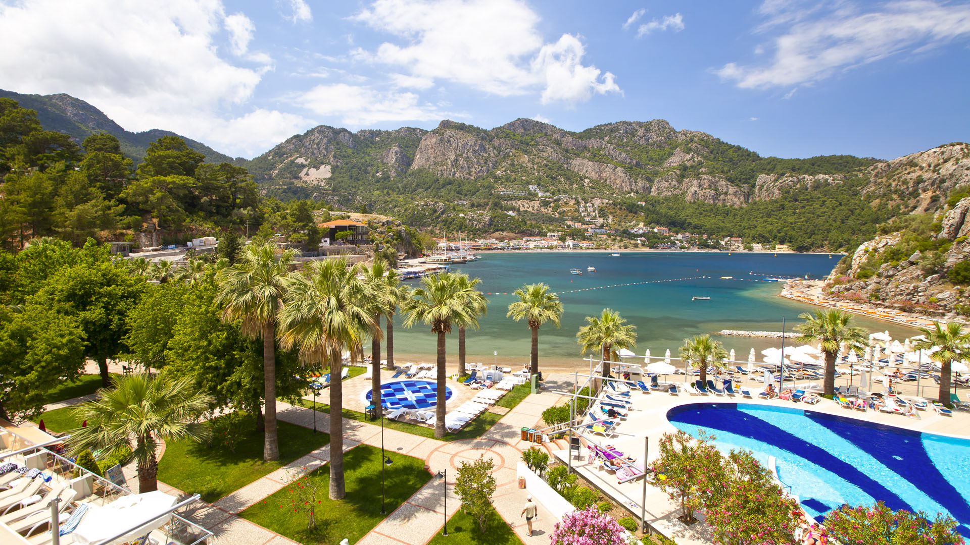 Мармарис – один из лучших курортов Турции на берегу Эгейского моря, с шикарным галечным пляжем и оживлённым бульваром вдоль набережной. Тут вас встретят тихое море, прекрасный климат, лишённый изнуряющей жары, отсутствие сильных волн, что особенно понравится семьям с детьми, и всё это благодаря расположению города – в бухте. Вечерами тут есть, где потанцевать, так что скучно не будет точно! Восхитит глаз и прекрасная гавань с прогулочными яхтами.
