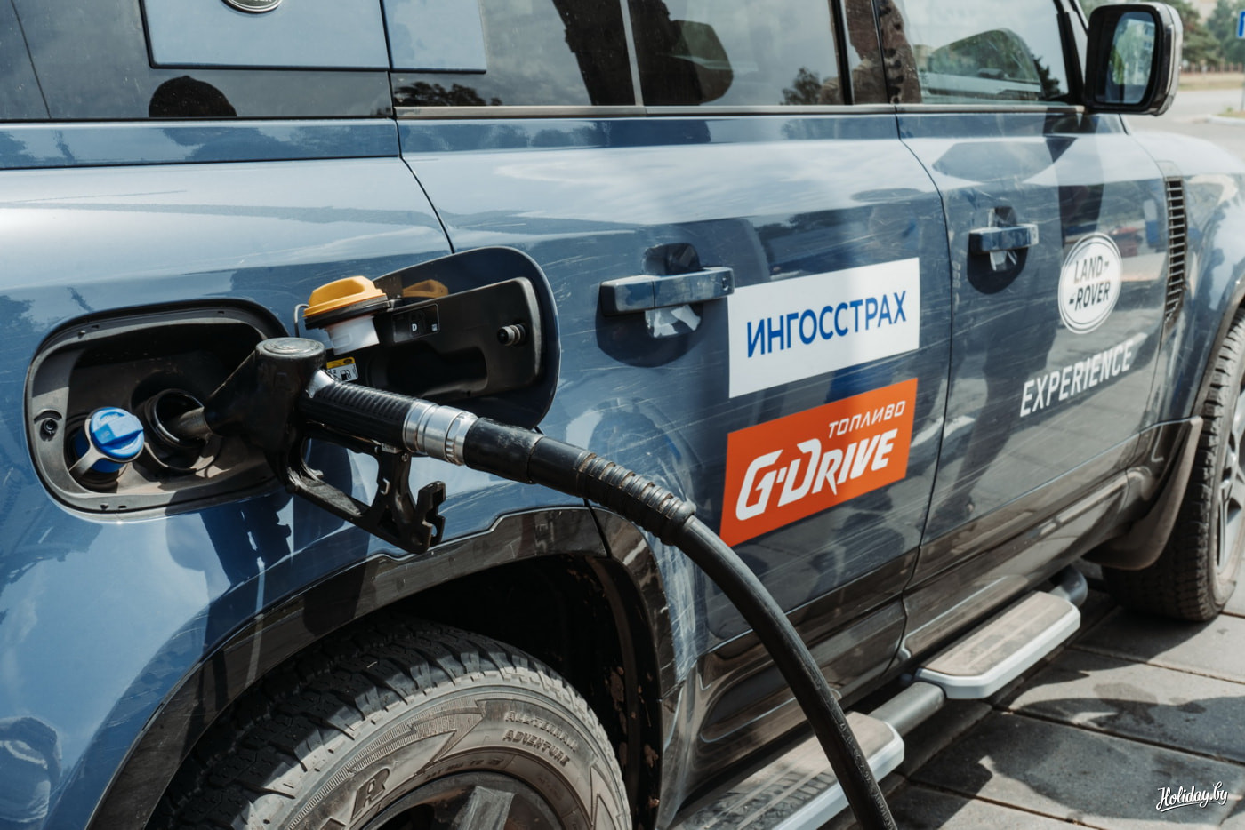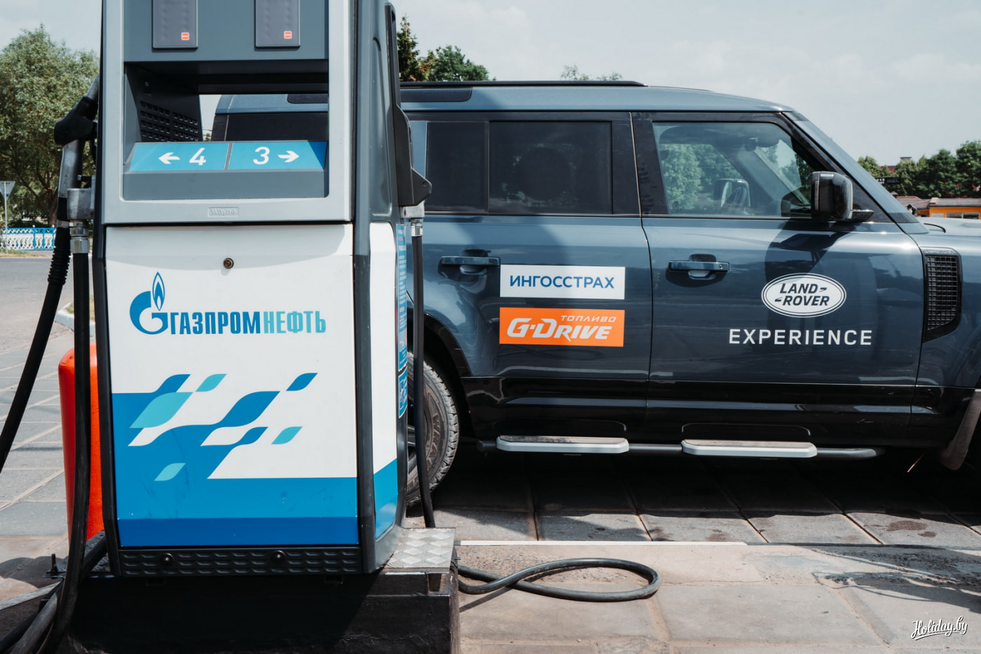Мы заехали пополнить запас топлива на одну из АЗС сети «ГазПромНефть», чтобы продолжить экспедицию Land Rover по этим краям Беларуси. Когда путешествуете на автомобилях, очень важно представлять средний расход топлива и знать карту заправок. В Беларуси, особенно если ехать не по основным дорогам, есть места, где колонку с топливом можно не встретить на протяжении сотни километров.