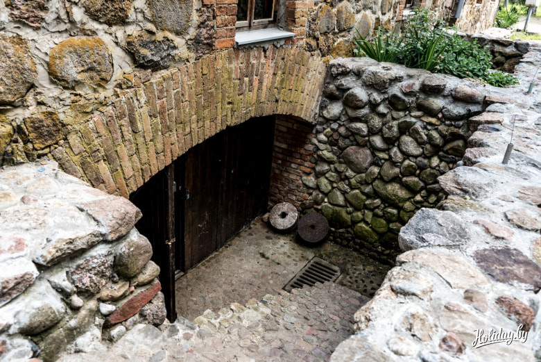 В прохладном подвале мы узнали, что эта мельница уникальна тем, что колесо находилось прямо внутри здания, так как река протекала прямо под ним.