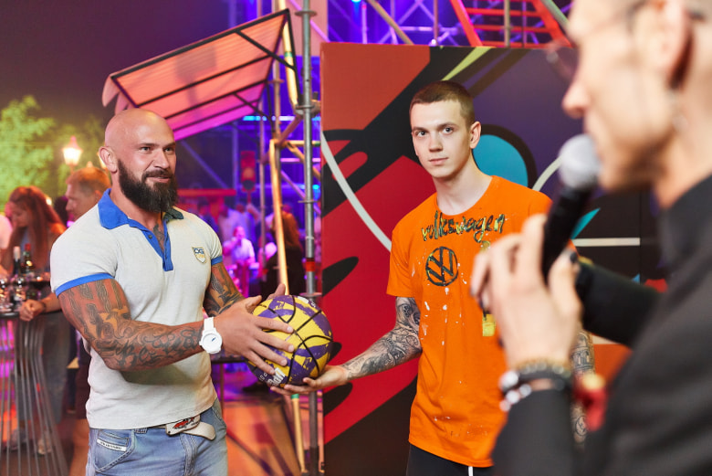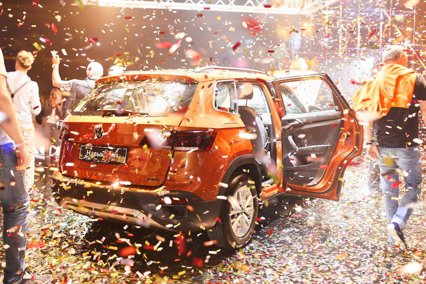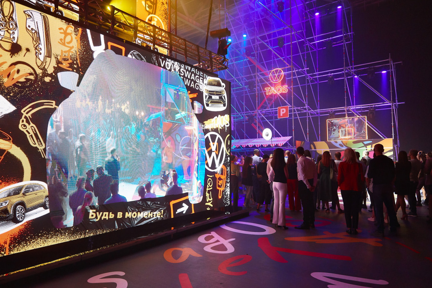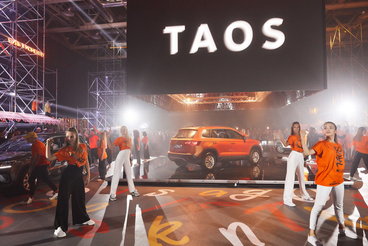 Кульминацией вечера стала шоу-часть презентации. В ней участвовало 50 артистов (танцоры, паркурщики, скейтеры, баскетболисты, битбоксеры), а сам Volkswagen Taos появился после поднятия вверх центральных экранов. Еще два автомобиля выехало в город по импровизированным дорогам.
