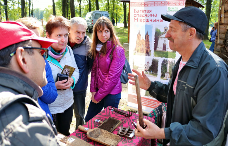 - У Міёрскі раён варта прыехаць не на адзін дзень, а хаця б на выходныя, каб адпачыць у агратурыстычнай сядзібе, пабыць сам-насам з цудоўнай прыродай і убачыць, акрамя свята, як мага больш мясцовых славутасцяў. Гэта і вадаспад на рацэ Вята, і экалагічная сцежка “Азяраўкі-Ельня”, і старажытны, а зараз самы маленькі горад Беларусі - Дзісна, і шмат іншага, чаго нават не чакаеш. Нездарма дэвіз брэндзінгу Міёрскага раёна - “Здзіўленне побач!” - падкрэсліў менеджар праекта “Разам для грамады і прыроды: Міёрскі раён” Алег Сівагракаў.