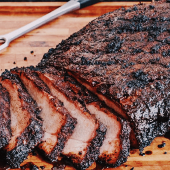 - брискет с гарниром (брискет – ароматная, с дымком, иссиня чёрная от копчения нежнейшая мраморная говядины, приготовленная в смокере)