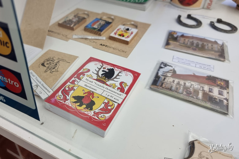 Усадьба Немцевичей является районным музеем, поэтому в лавке много интересного из окрестностей Бреста. Безусловно, есть стандартные наборы кружечки-магниты-блокнотики. Но самый смак на полках, где представлен местный крафт.