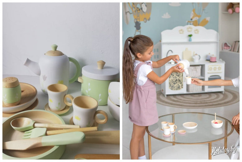 Далее в нашем списке – игрушечная деревянная посуда и еда от бренда Любо-дорого. Всё можно приобрести по отдельности, что очень удобно. С такими инструментами игра в повара, магазин или ресторан становится в разы интереснее. @lybodorogo100 #детскаяпосудка