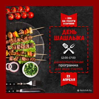 Мы уже всё продумали: приезжайте к нам на «День шашлыка», который пройдет 23 апреля 2022 г. и откроет этот сезон! Ну и как же «Фестивальный» без активного отдыха? Не стоит забывать для чего мы худели к лету!