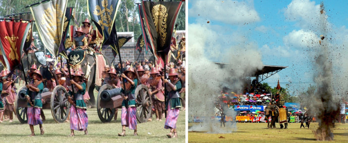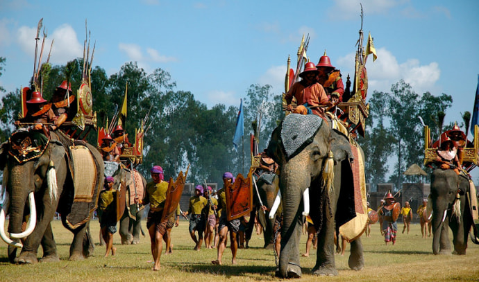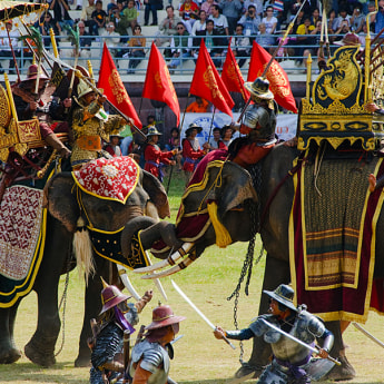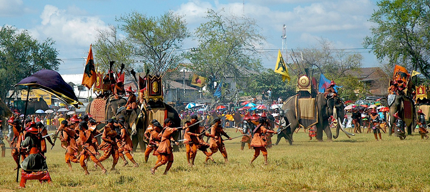 Представление открывают рано утром семьдесят мускулистых представителей Королевской армии Таиланда, которые воссоздают события былых времен в исторических сценах во время битвы на слонах. Наездники вооружены древними мечами и копьями, а слоны богато украшены дорогими одеждами и аксессуарами.
