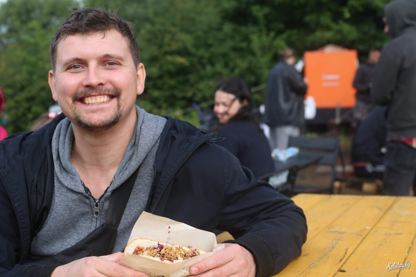 — Все очень доброжелательные здесь на фестивале. Если сравнивать с обычной работой в Минске, то здесь стопроцентно все здороваются, все такие милые и добрые. Круто очень! И даже непогода не помешала этой доброжелательности – с красивой улыбкой на лице поделилась впечатления Дина, и продолжила рассчитывать людей стоящих в очереди за сэндвичами.