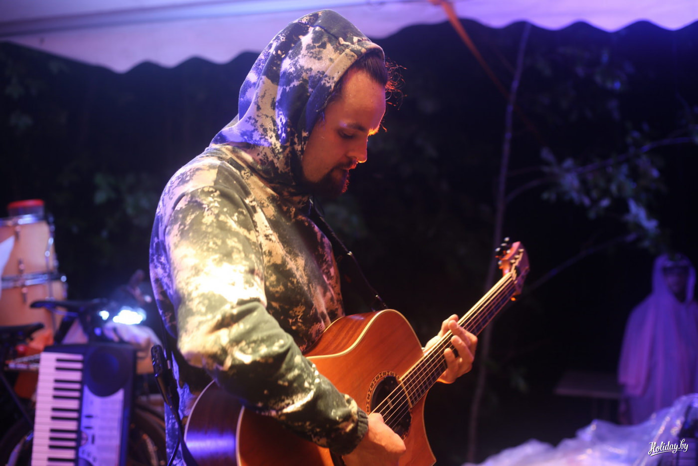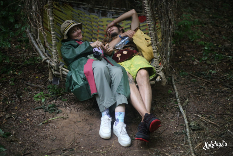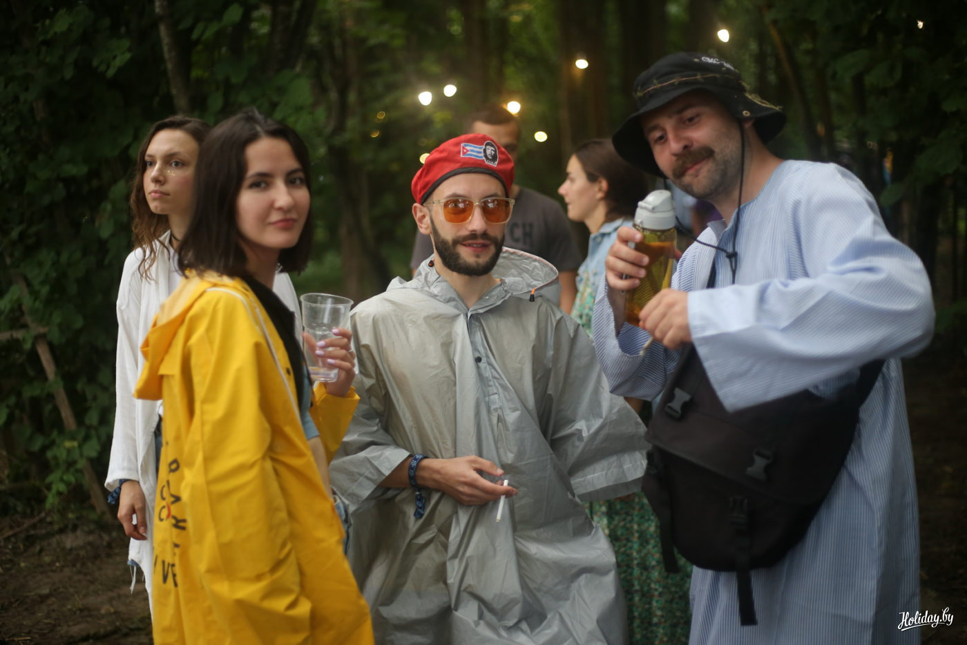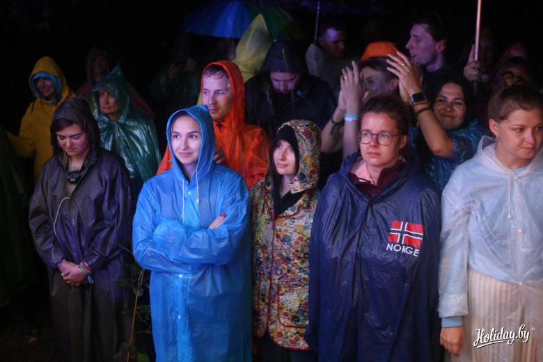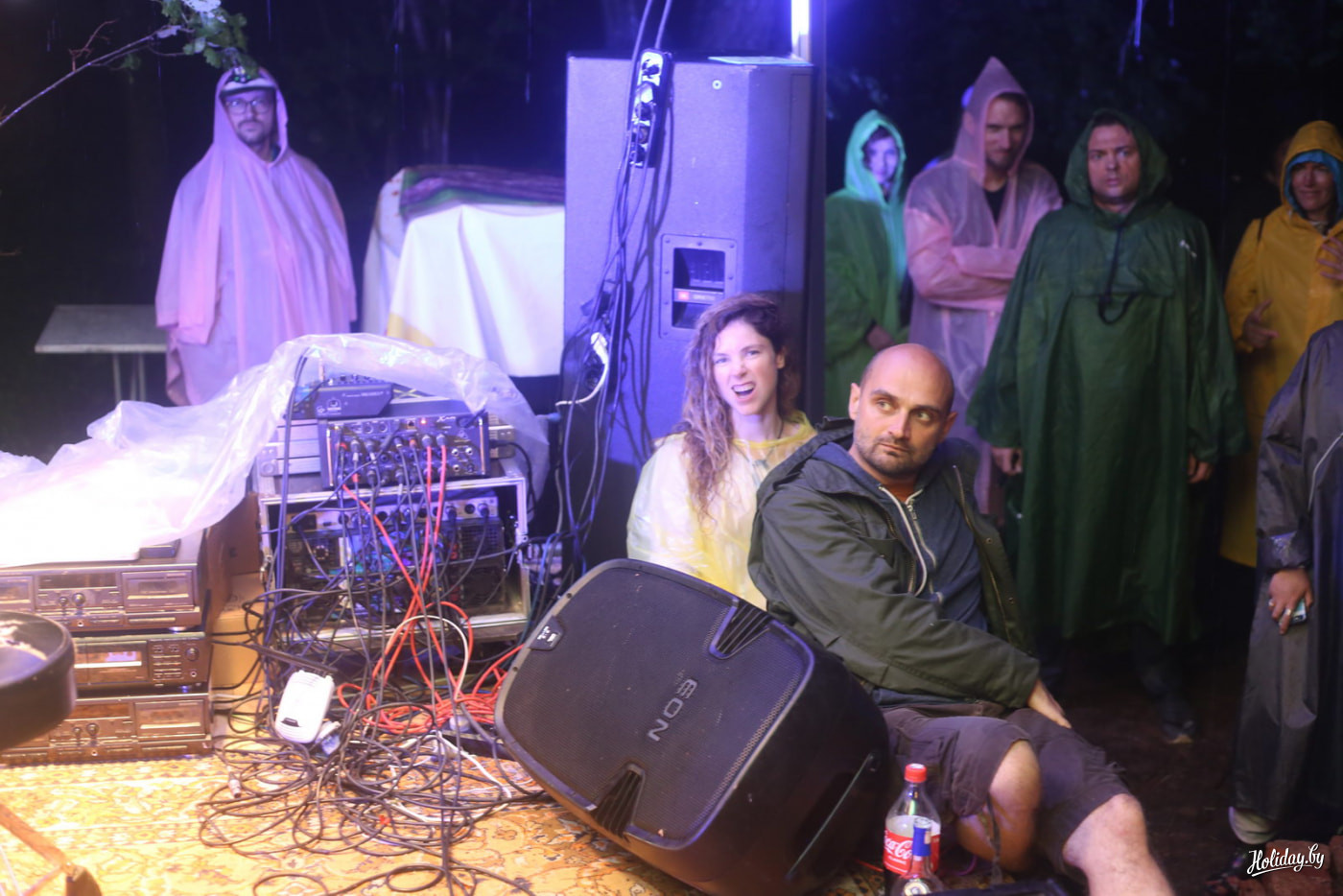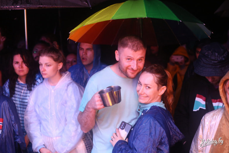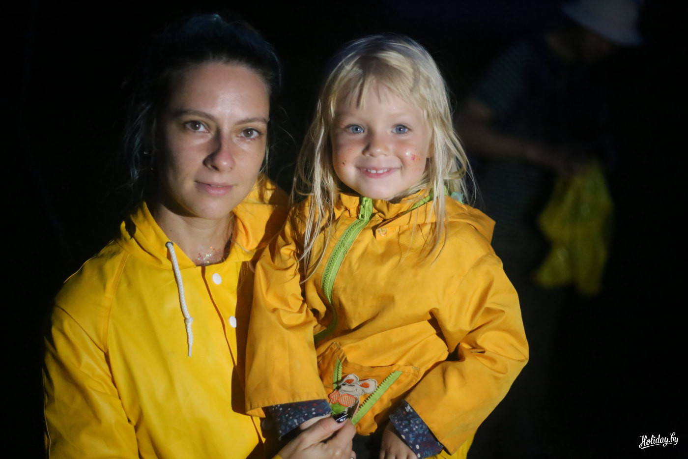 И вот, сразу после «цыганскай імпрэзы», в планы артистов и организаторов фестиваля вмешалась небесная канцелярия – полил проливной дождь с грозой и сильным ветром, который почти не прекращался до самого утра. Но это не расстроило гостей фестиваля –а некоторые укрылись в своих «намётах», а некоторые из которых оставались тусоваться несмотря ни на что. Свои впечатления прикрываясь от дождя рассказала минчанка Маша, держа на рука маленькую дочурку Софию: