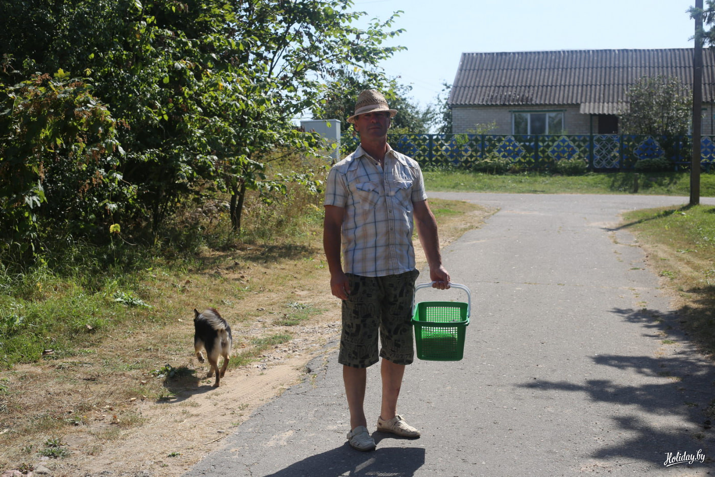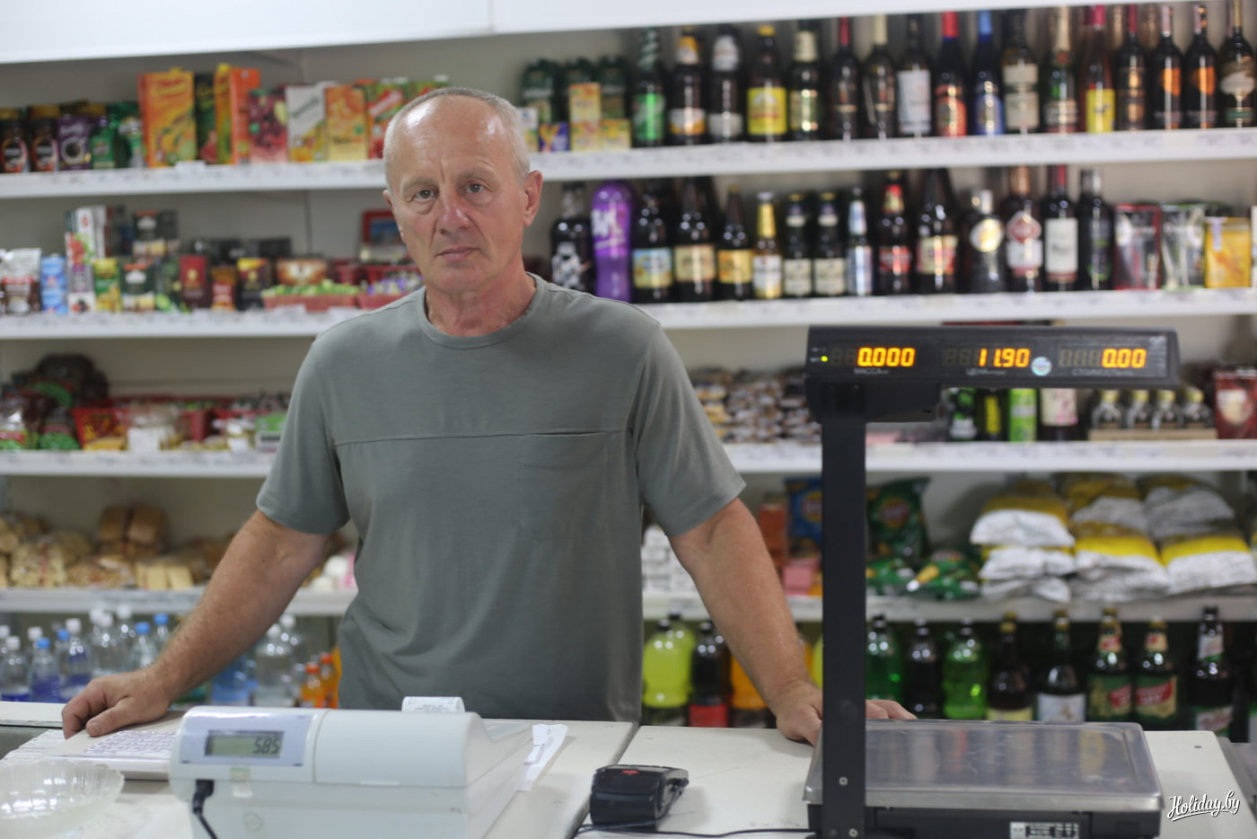 — Я сам из Барановичей, но сейчас живу здесь и работаю в этом магазине с 21 марта сего года. Туристы приезжают сюда каждый день, как я замечаю минимум по две-три машины в день. Мне бы хотелось, чтобы туристы ещё чаще в магазин заходили, покупали товары. Я вот удивился, что вы зашли. За покупками приходят местные жители, вот сейчас ждем, когда хлеб свежий привезут. А так покупают в магазине все! Здесь такая интеллигентная деревня, покупают достаточно дорогие товары. К примеру, в меру берут коньяк, а не дешевые спиртные напитки.