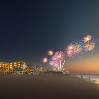 Новогодний праздник начнется в шатре на территории отеля, где гостям будут предложены легкие закуски, шампанское и напитки. Затем гости приглашаются на гала-ужин, во время которого будут играть 30 музыкальных коллективов, исполняя музыку самых разных жанров, а также выступят танцовщицы канкана. Открытый бар предложит шампанское, премиальные алкогольные и безалкогольные напитки в неограниченном количеств. А на роскошном шведском столе гостей будут ждать самые разнообразные блюда от лобстеров и икры до шаурмы и фахитас. Также будут работать открытые кухни и буфет для детей. Особое удовольствие – насладиться панорамными видами на остров Пальма и полюбоваться праздничным фейерверком.