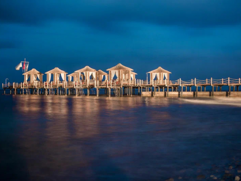 В распоряжении гостей отеля частный песчаный пляж, 14 бассейнов (в т.ч. бассейны с подогревом), большой СПА-центр с турецкой баней и огромным выбором процедур, ночной клуб с диджеем.