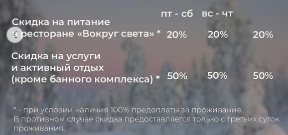 Гости, забронировавшие 3+ суток проживания, получают возможность на 3 день оплачивать фиксированную стоимость за: