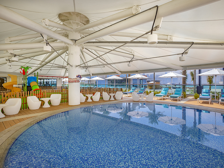 Детский клуб предлагает веселую атмосферу с закрытыми и открытыми игровыми площадками, тенистым неглубоким бассейном, играми, игрушками и развлечениями, которые подходят для самых маленьких и юных гостей в возрасте до 13 лет.