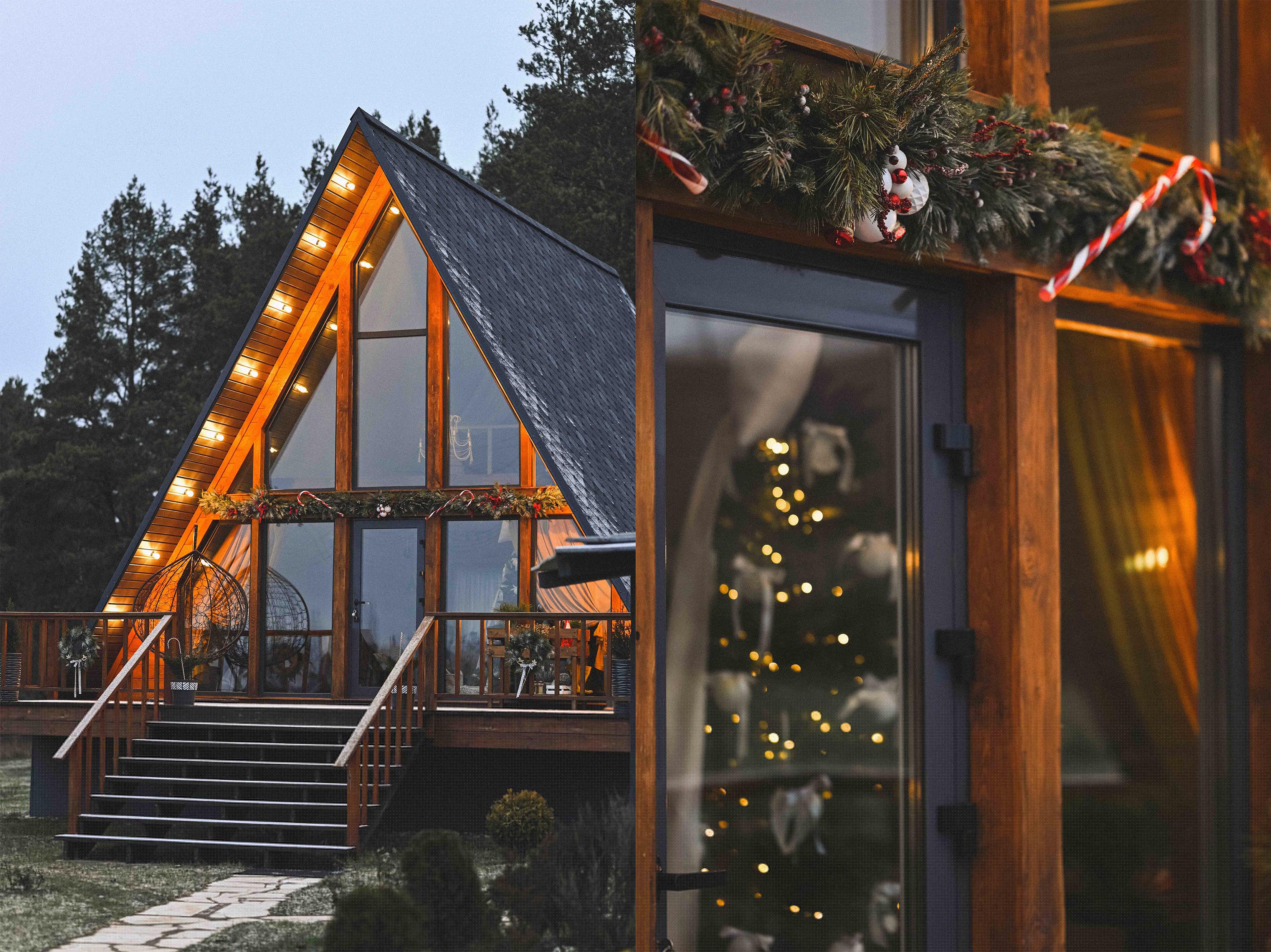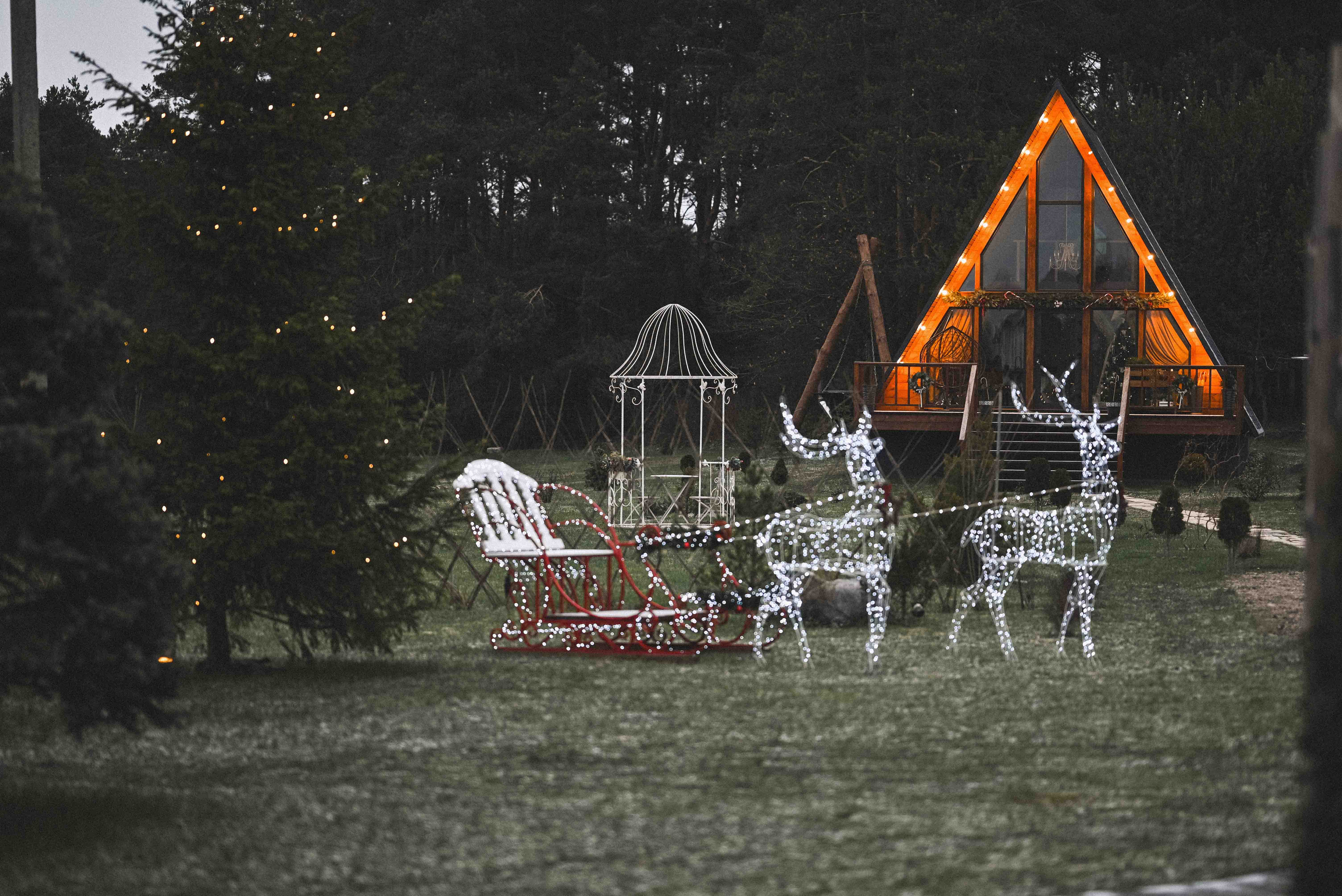 Наши дома: треугольный «Koko House» и бревенчатый «Koko Hata» полностью готовы к противостоянию Гринчу. Эстетичный и современный новогодний декор в домах и на территории не даст шанса никому и посеет в каждом дух Рождества. Рождественские венки, гирлянды, игрушки, украшения, светящиеся олени, сани Дед Мороза, новогодние ёлки, качели, камины, проекторы, банные чаны и всё это на окраине соснового леса покорит эстетичностью и дотошностью. У нас Вас ждёт полная ПЕРЕЗАГРУЗКА, а также останутся воспоминания на долгое время, и мы снова будем рады Вас видеть.