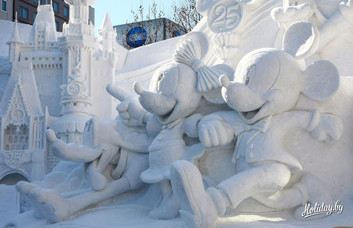 Особенно примечательны в эти дни снежные фестивали «юки моцури» в Северной Японии, где изо льда и снега строят города, крепости, исторические фигуры и многое другое.