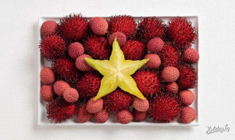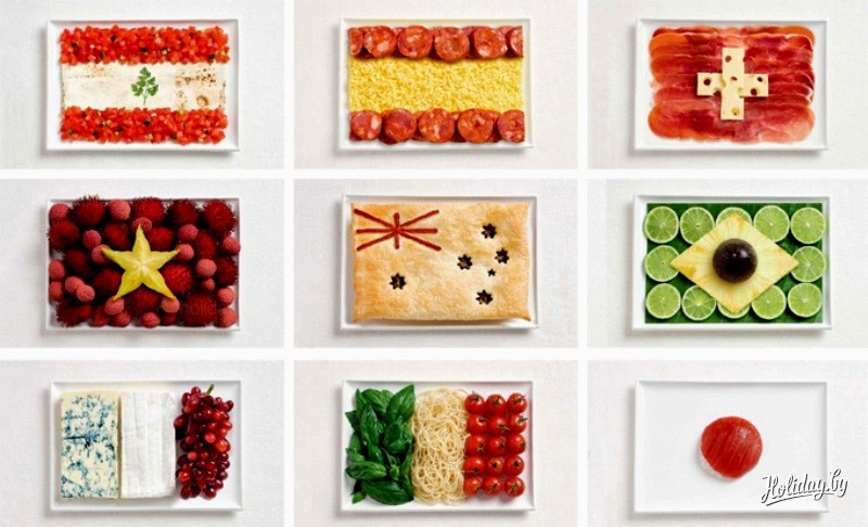 Можно прибегнуть и к тяжелой артиллерии – сладостям. Обычный торт или пирог также можно превратить во флаг. Здесь все просто. Клубника, малина – красный цвет. Киви, лайм – зеленый. Бананы, мандарины, апельсины – желтый. Нужен синий? Купите кокосовую стружку, окрашенную в этот цвет. В общем, любой флаг может стать съедобным.