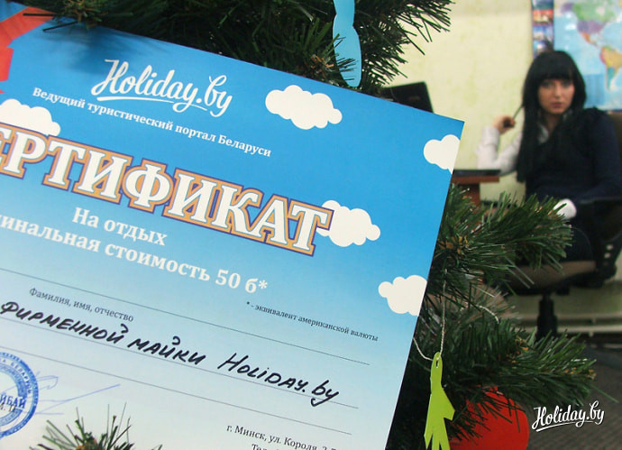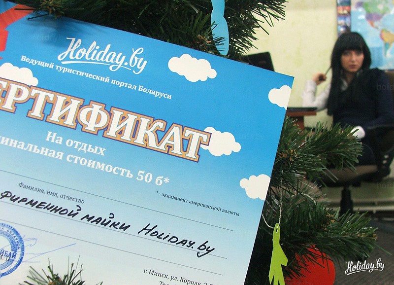 С 9 декабря 2011 года ведущий туристический портал Беларуси Holiday.by объявляет конкурс на самую лучшую идею оформления фирменной майки. Надпись, рисунок, логотип – в общем, всё, что может украсить нашу будущую маечку и порадовать взгляд на нее смотрящих и носящих!