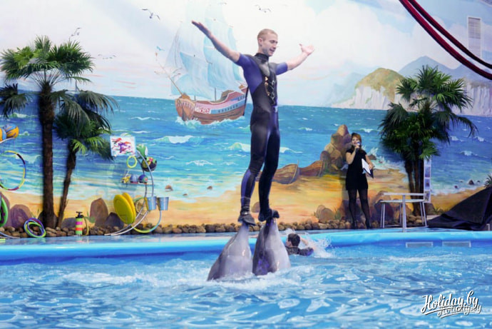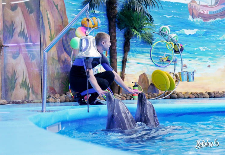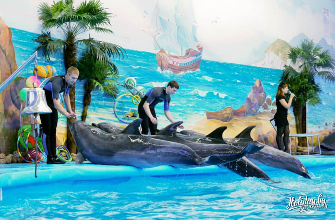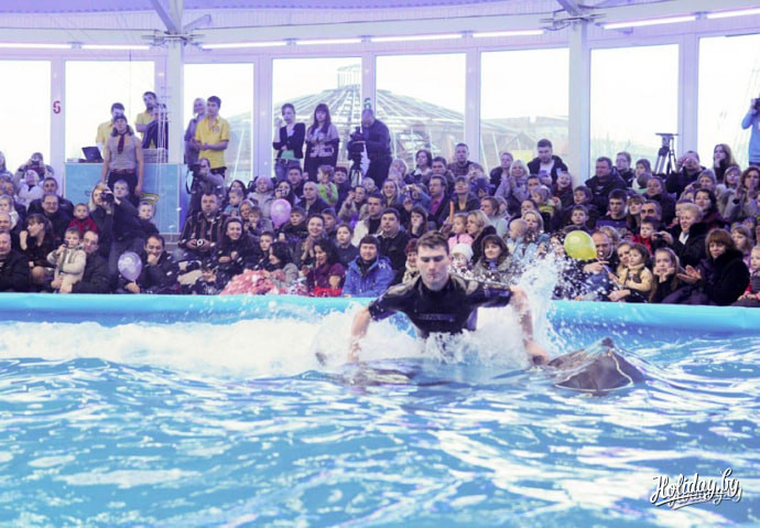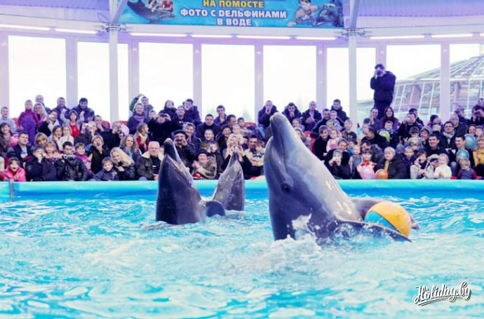 Минский дельфинарий предлагает новую услугу "дайвинг с дельфинами". Погрузиться в воду с этими великолепными морскими млекопитающими будет стоить 1 млн. 200 тыс. белорусских рублей. Цена билета в дельфинарий от 85 до 115 тыс. белорусских рублей. Увидеть фееричное выступление дельфинов в 12.00 в будние дни можно за 85 тыс. белорусских рублей, в 15.00 – за 95 тыс. белорусских рублей, в 18.00 – за 105 тыс. белорусских рублей. В выходные дельфины готовы радовать публику за 115 тыс. белорусских рублей. Однако гостям следует помнить, что дельфинарий работает во все дни кроме понедельника. И чтобы попасть в гости к дельфинам достаточно показать купленный билет, оплачивать вход в зоопарк уже не нужно.