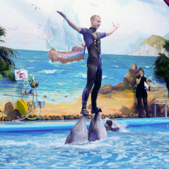 Дельфинарий обещает ежедневные представления трижды в день в 12:00, 15:00 и 18:00. Один выходной – понедельник.