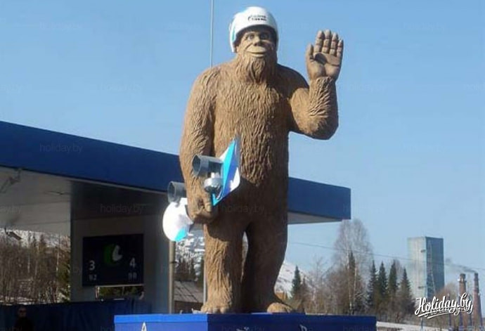 Вот, к примеру, в Горной Шории (не пугайтесь, это на территории Таштагольского района Кемеровской области) увековечили настоящую «знаменитость» - снежного человека! Идея эта пришла в голову не властям, а владельцу бензоколонки. В Горную Шорию приезжают любите зимних видов отдыха. Такие люди обычно позитивно относятся к жизни, видно, хозяин заправки также очень веселый человек. Снежный человек со сноубордом – прекрасная идея. Побольше бы таких идей.