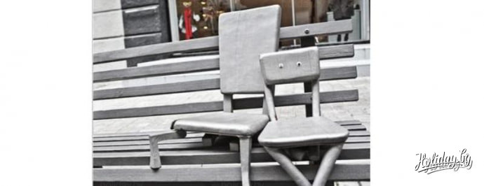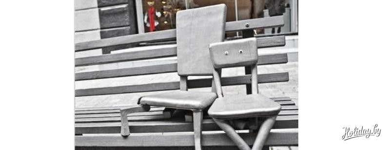 Милым девушкам, влюбленным парам и мечтательным парням стоит съездить на ул. Хрещатик, 15. Там на лавочке сидят два влюбленных стульчика. Скорее всего, они не так давно встречаются, так как девочка явно смущается, ведь «сидит» скрестив ножки, а кавалер держится уверенно, даже немного нагло. В общем, присаживайтесь рядом. И любви вам!