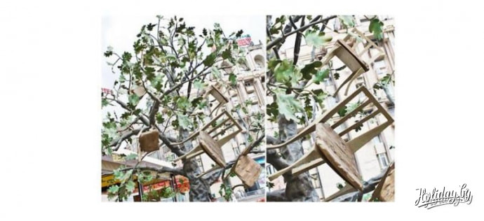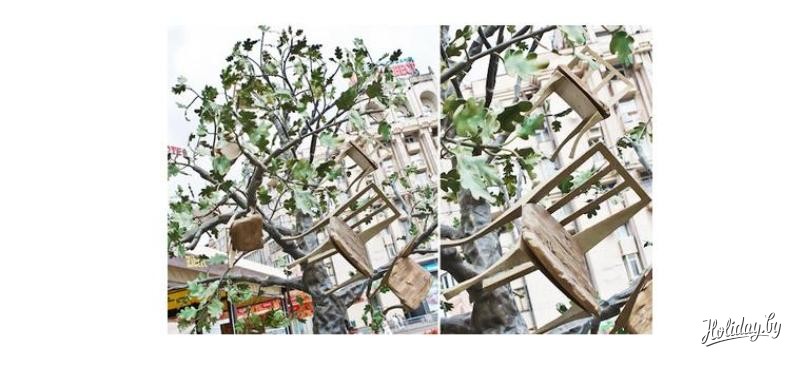 А на Майдане Незалежнасти стулья «растут» прямо на дереве. Автор скульптуры, Владимир Белоконь, хотел «посадить» дерево в ботаническом саду, чтобы оно росло рядышком с настоящими деревцами. Но осуществить эту задумку было слишком сложно. Ну и ладно. Главное, что памятник получился поражающим воображение.